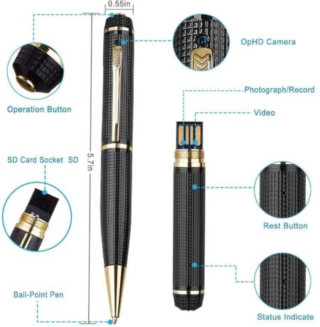 Product DescriptionRecording FormatMP3 (512Kbps)Video FormatAVISize (MM)90X25X11MMUSB ConnectorUSB 2.0 High SpeedTF Card4GB – 32GB (max support 32GB)Battery Capacity3.7V/1100MA   lithium batteryFrame Number30 framesVideo CodeMJPGImage Ratio4:3:0Weight(g)78gFilming Resolution1920*1080P8GB TF Card Recording Time280 minutes8GB TF Card Filming Time80 minutesWorking TemperatureAbout -5 to 40 ℃Compatible SystemWindows 2000&above