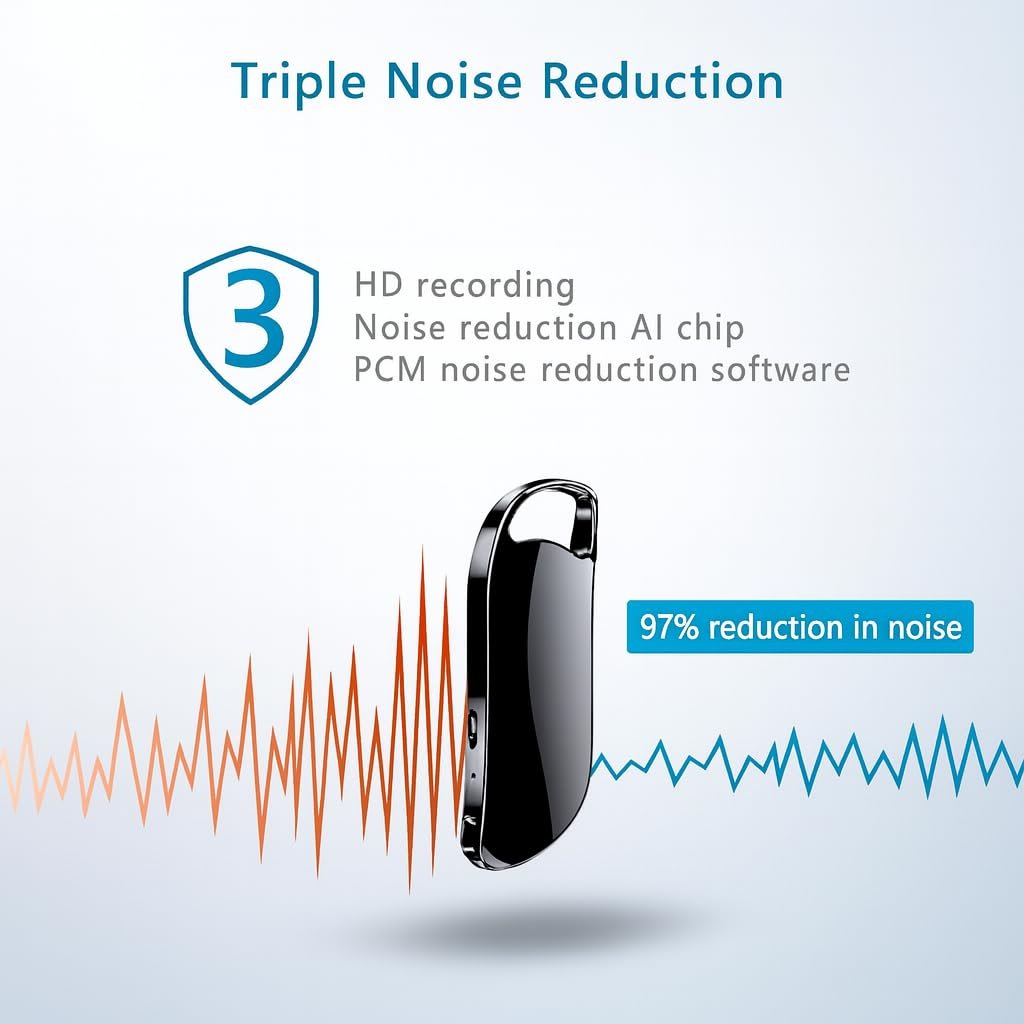 - 【Compact Key chain Design】 The voice recorder conveniently shaped like a key chain that enabling you to carry it. It has AC function that can automatically adjusts the noise source to make a HD clear sound quality